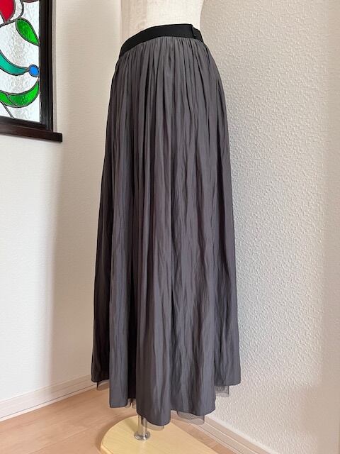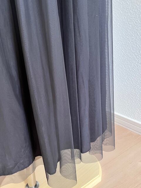 細かい目で柔らかいチュールを使用しているため、広がりが少ないきれいな落ち感のシルエットです。