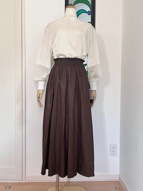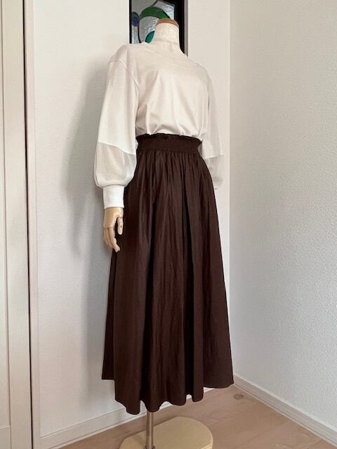 たっぷりのシャーリングが美しいシルエットを作り出しています。