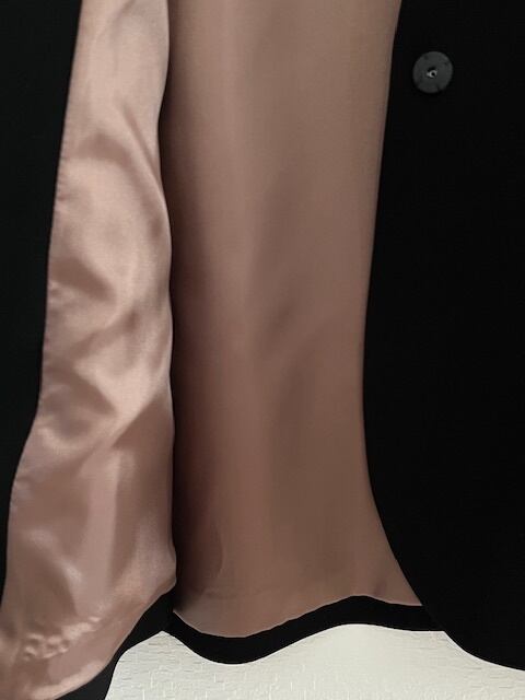また首元をすっきりと見せ、薄い肩パッド仕立てで美しい