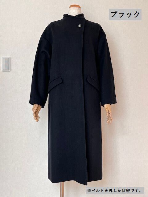 スタンドカラーと襟元のワンボタンが、エレガントな印象を与えます♡